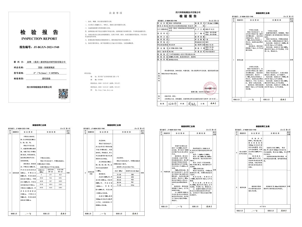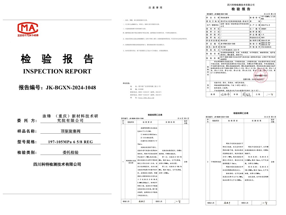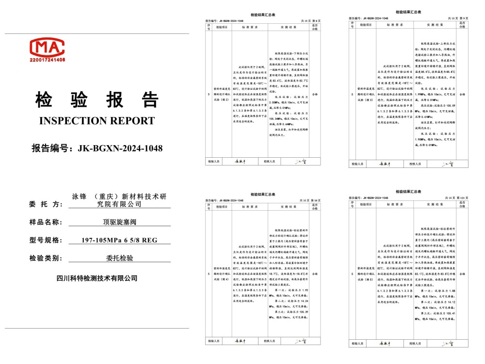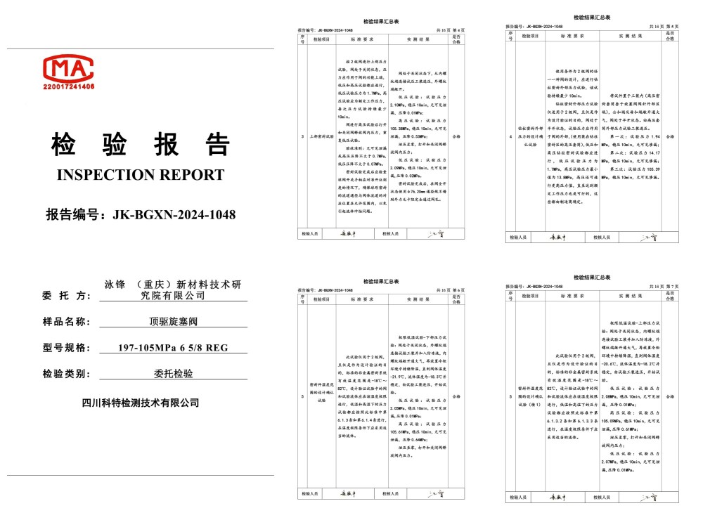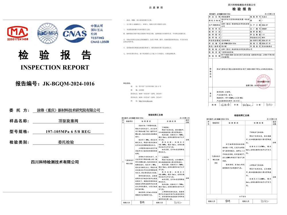 140MPa特高压特深井顶驱旋塞阀,DQ70顶驱用IBOP197/140MPa、12000米钻机用IBOP250/140MPa、15000米钻机用IBOP280/140MPa;已通过第三方国家级测试机构认证,并交于客户使用。实际应用案例:国家级深地塔科1井、川科1井,并取得重大成功。
