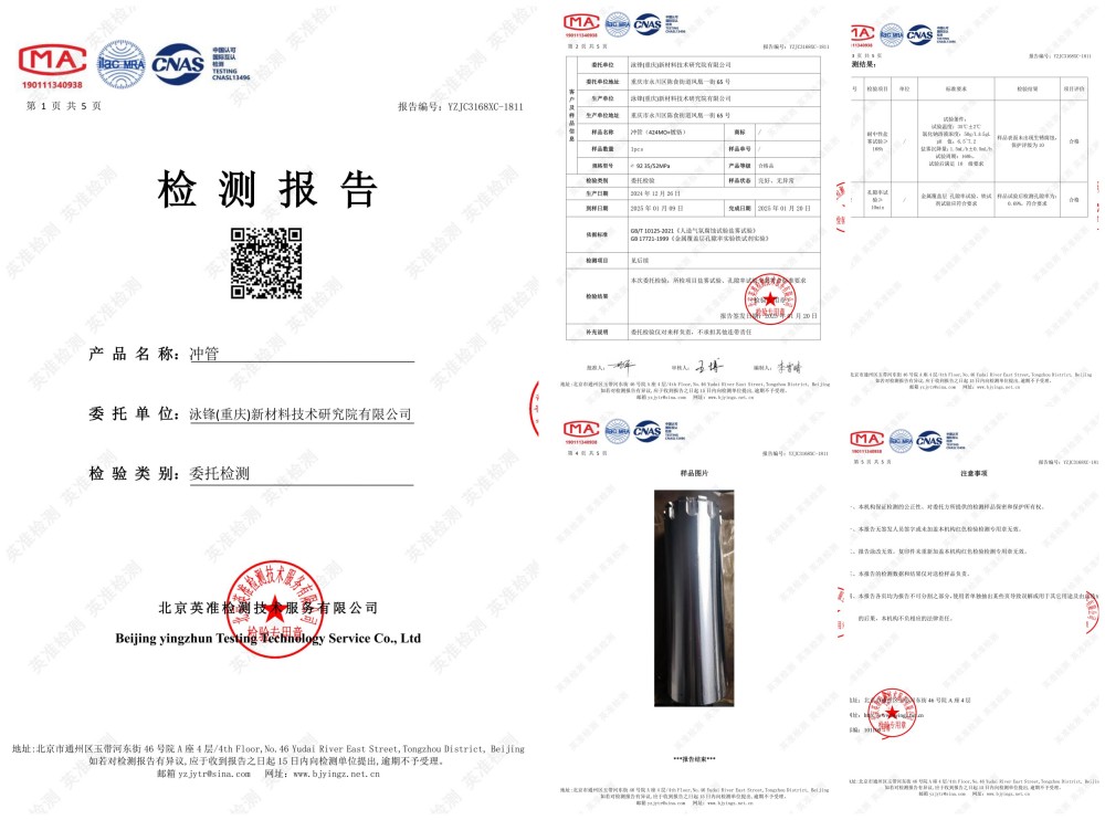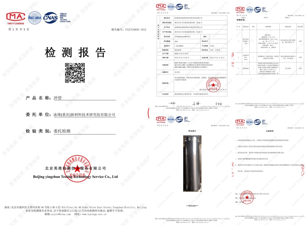 采用特殊热处理工艺,完全保证冲管的承压能力。